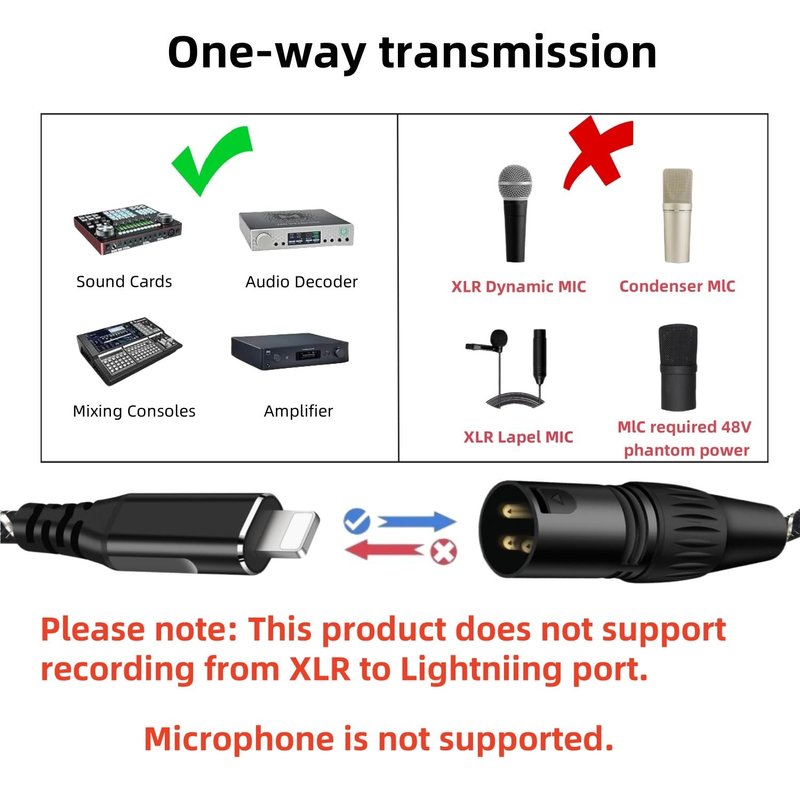 NCGGY Lightn ing to XLR Male Output Audio Cable 6.6FT,i Phone to XLR Audio Stereo Cable,for Amplifier, Speaker, Mixer Console, etc(No Audio Recording Support)