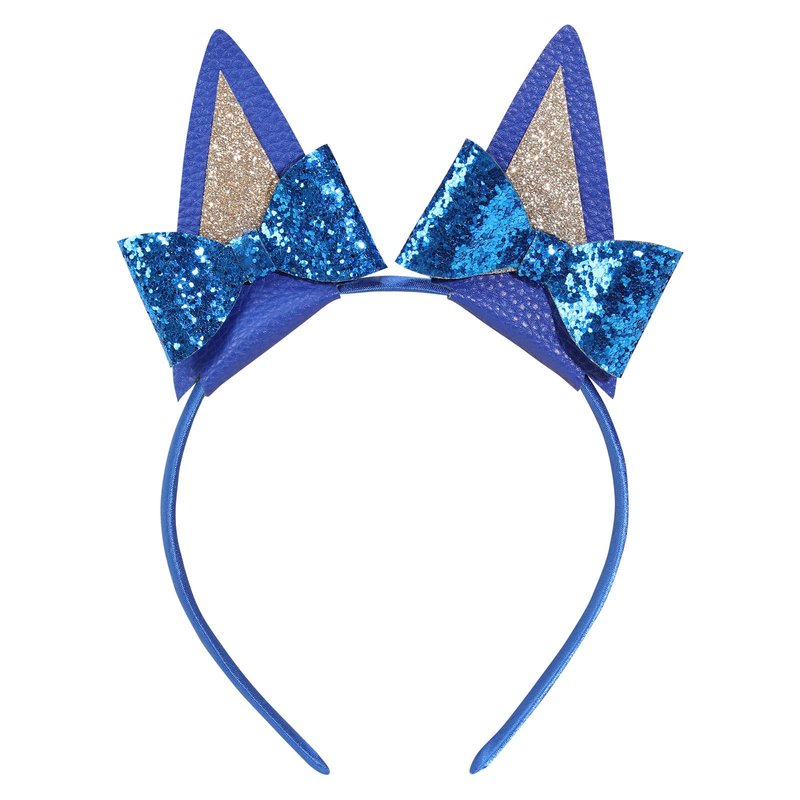 NCMAMA Blue Dog Ears Headbands For Girls, 1Pcs Cat Ear Headband Halloween Birthday Party Supplies Glitter Hair Accessories Toddler Kids Adult (Blue)