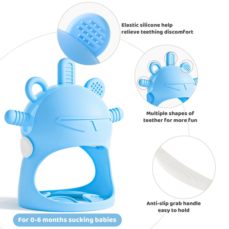 - 💙Hand Teethers for Babies 0-6 Months: A sucking and chewing toy, designed for babies. Relief teething pain and help babies to explore how to use themselves better. The hand hold design keeps it on baby's wrist, anti-drop.