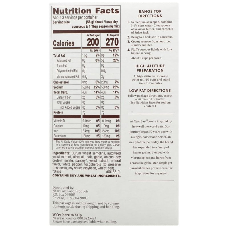 Near East, Couscous, Roasted Garlic & Olive Oil Mix, 5.8oz Box (Pack of 4)
