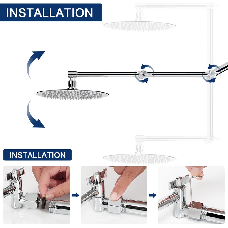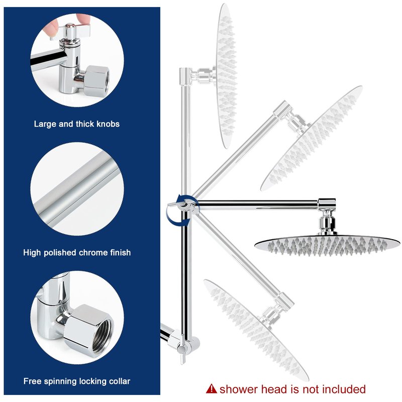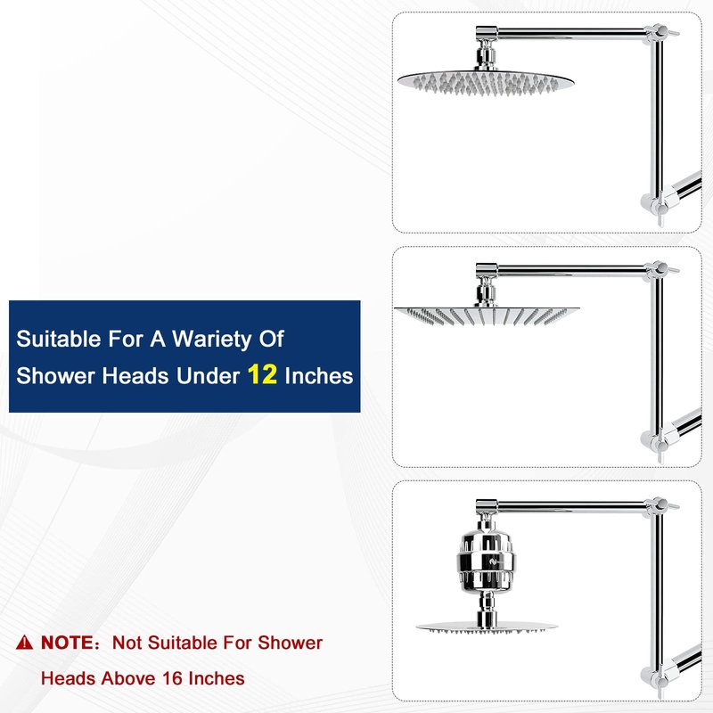 - ๐ UPGRADE SHOWER EXPERIENCE - Adjustable shower arm fits any shower head or hand shower. There are three different adjustment methods, allows you to adjust the showerhead for best angle and height. Fixed shower head overhead, you can enjoy a wonderful downpour that is flowing down over your full body. NOTE: This adjustable shower arm is not available for 16'' shower head ! ! !