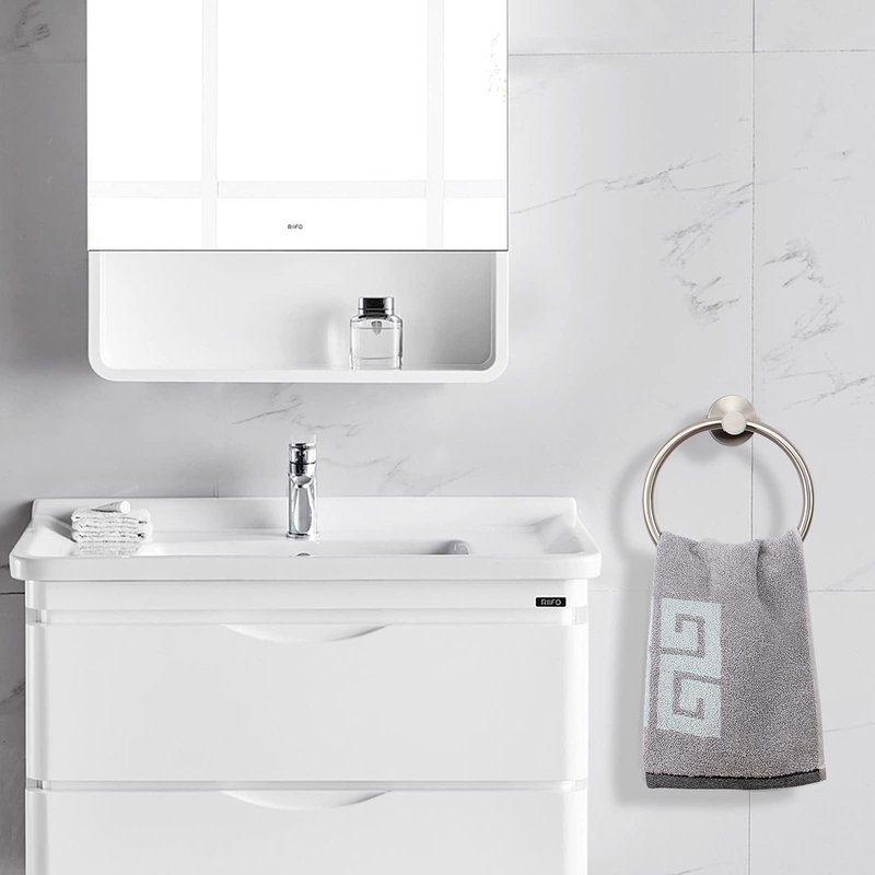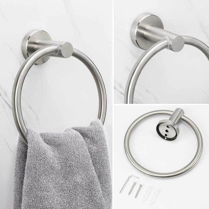 - 【MODERN STYLE】This bathroom towel ring with elegant and stylish look adds a unique and luxury feeling to your home. Brushed nickel appearance and round design make your home simple and contemporary.