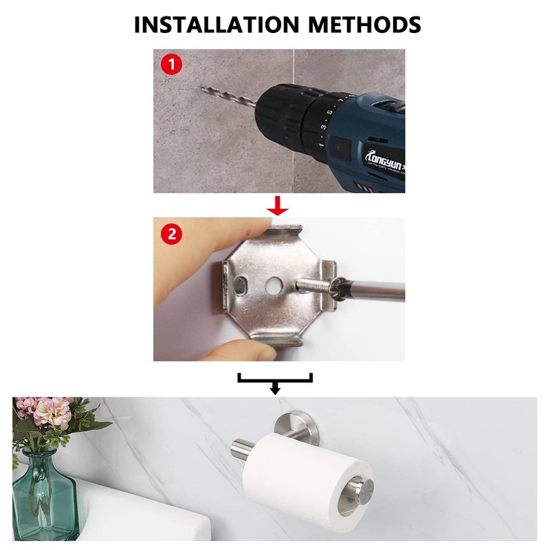 - PRACTICAL AND SAFE: Toilet paper holder with stainless steel knob at the bar end can easy to hold the roll paper prevents it from falling off. It has unique slot design with screw tightening on the bracket to prevent from rotation.