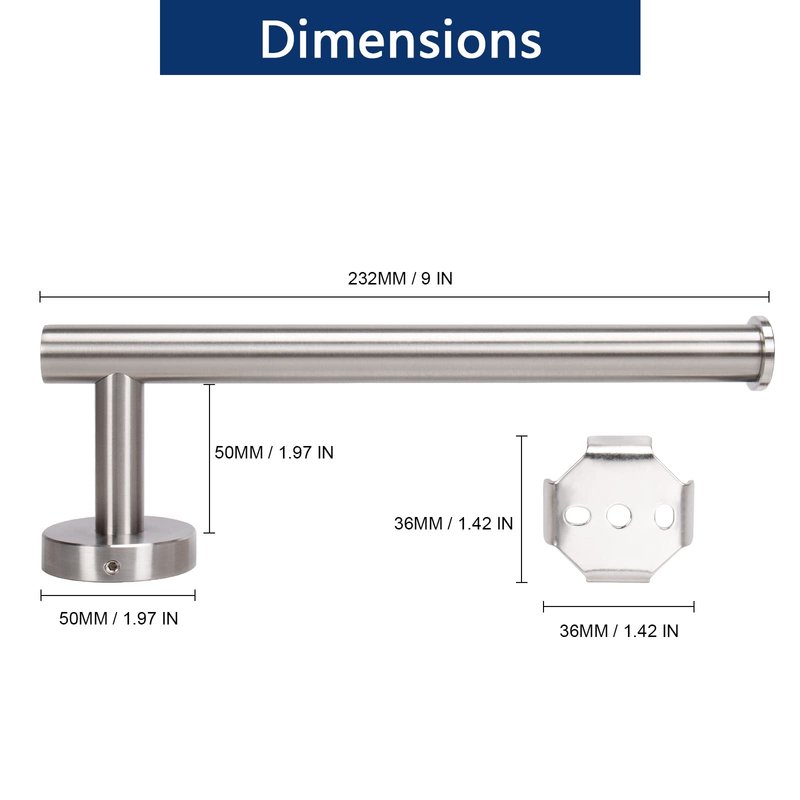 - 【WIDELY USE & SIZE】: Length of hand towel holder is 9-inch. And the distance to the wall is 3-Inch. Distance enough for for air circulating and towels fully drying. It can also hang kitchen paper. One arm style doesn't limited Installation direction, can choose mounting it left, right or vertically in everywhere.