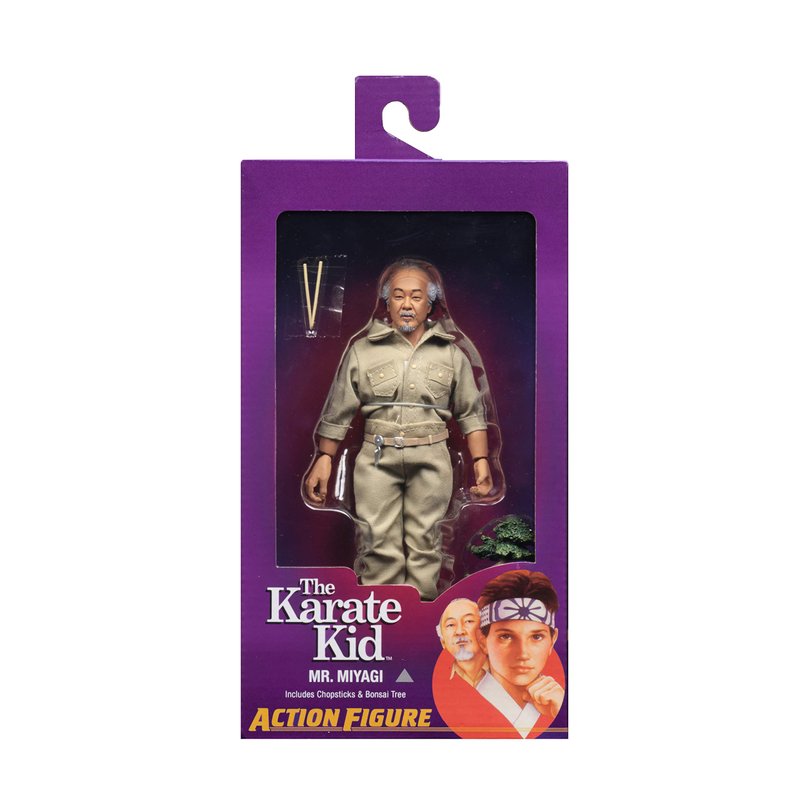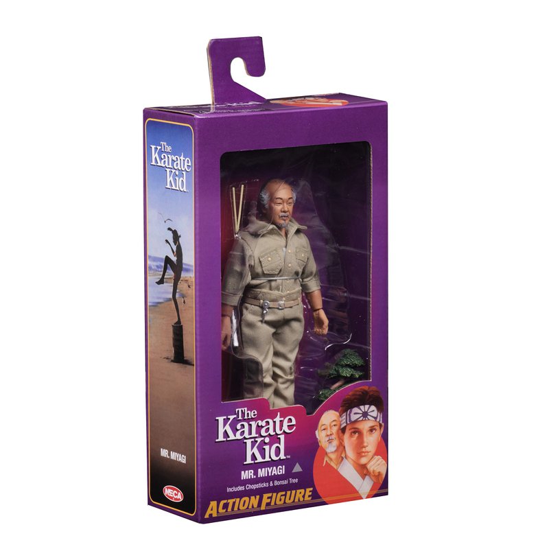 From The Karate Kid, the iconic ‘80s film that sent a generation of kids rushing to enroll in karate classes! Mr. Miyagi comes with bonsai tree and alternate hand holding chopsticks. Figure is fully articulated figure stands approximately 8” tall and features an authorized likeness. Window box packaging.