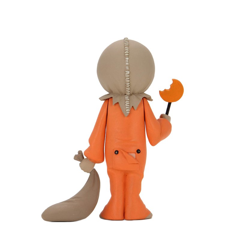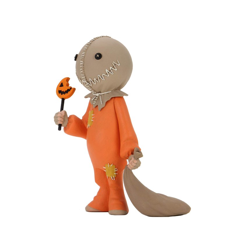 - Trick R Treat Sam comes with a jack-o-lantern lollipop, bag, and extra head