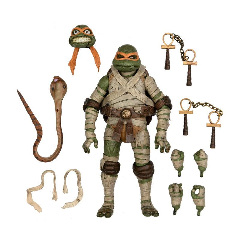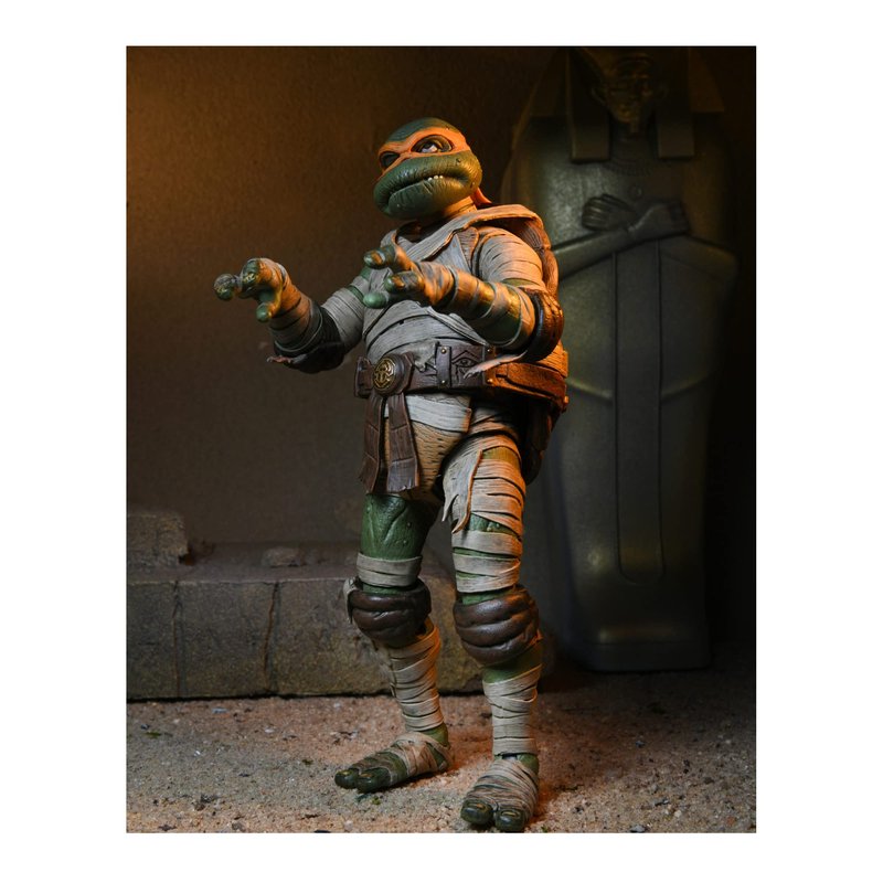 - Action Figure: The NECA Universal Monsters TMNT 7-Inch Scale Ultimate Michelangelo Mummy Action Figure is a new addition to its Universal Monsters x Teenage Mutant Ninja Turtles action figure collection. It features the Turtle as 'The Mummy'