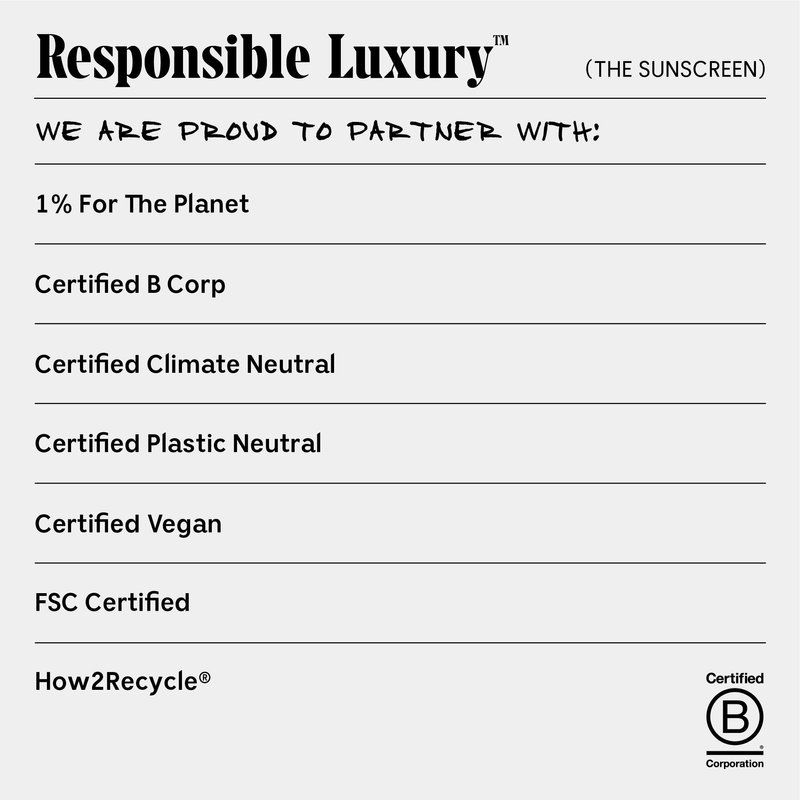 - FOOTPRINT: The Sunscreen comes in a 100% Bio-Resin PP bottle and cap. Certified B Corp. Certified Climate Neutral. Certified Plastic Neutral. 1% For The Planet Member. FSC-Certified.