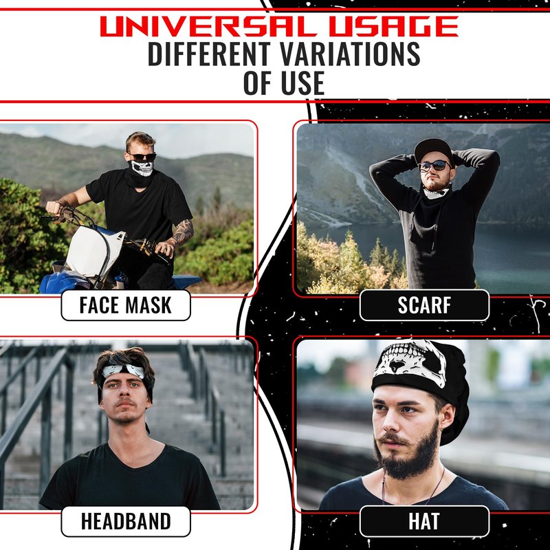 - Wide Application: When you choose the skull baklava masks you get many accessories at once. The black face mask can be used as a neck cover for men, half skull face mask, motorcycle masks for men and as face winter ski mask.