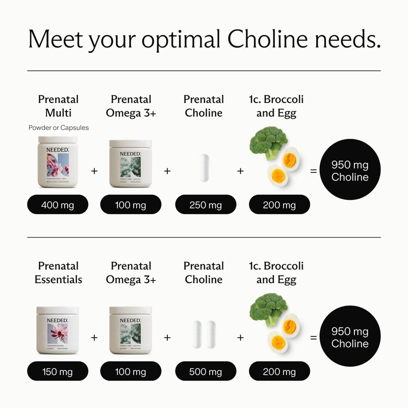 Needed. Prenatal Choline - Optimal Prenatal Choline Add On, 250Mg Talc-Free Filler, Heavy Metals Free, Brain Development in Utero/Early Life, with VitaCholine, Non-GMO, Allergen Free 60 Capsules