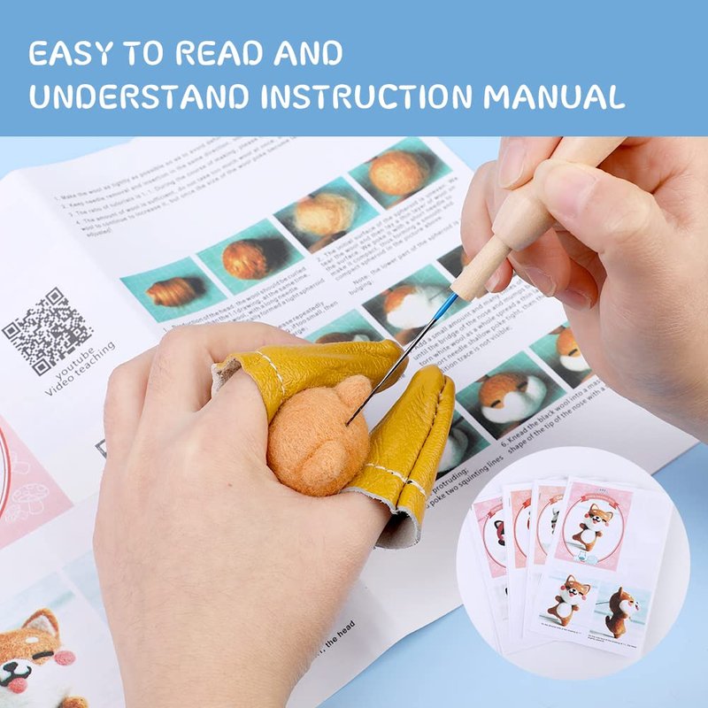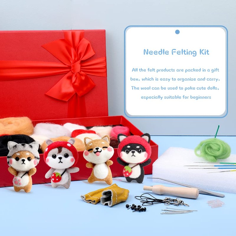 - ★Value Wool Felt Kit: The wool felting kits come with a high-grade product box, includes 4 x dog making material bag, 5 x instructions, 10 x black plastic eyes, 6 x felting needles, fingercot, tweezers, wooden felting tool, felting mat, clear dust plug, phone lanyard, total 46 pieces, and can be a lovely product set for your mom, kid, a friend who loves wool felting.