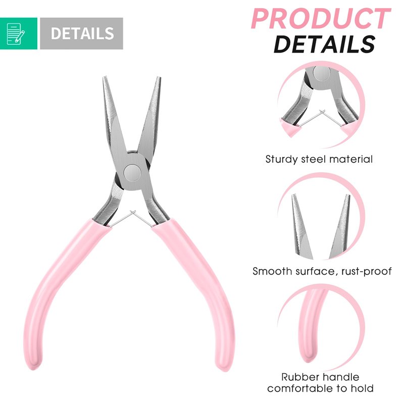 - Ergonomic design: Chain nose pliers for jewelry with rubber handle will give you a comfortable grip and you can hold the pliers firmly. This small pliers mini jewelry making tool comes in a portable 5-inch size that fits perfectly in the palm of your hand.