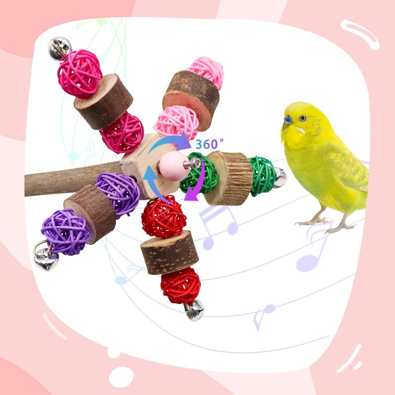 - Interactive Bird Entertainment: Our bird perch toy features a rotating takraw ball and bell, creating a delightful ringing sound when your bird chews or interacts with it. This engaging activity enriches your bird's life, keeping them entertained and preventing boredom in the cage.