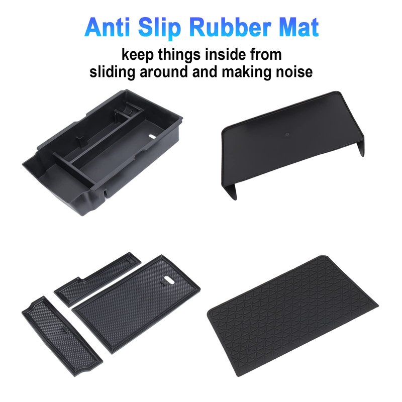 - 【Superior Material】 Our organizer tray made by high quality sturdy black ABS plastic, results in a smooth, durable and scratch-proof surface that blends in with the interior of your car, just like the original. And the anti-slip mat can prevent items sliding and making noise, decreasing damage and noise when you drive on bumpy surface.