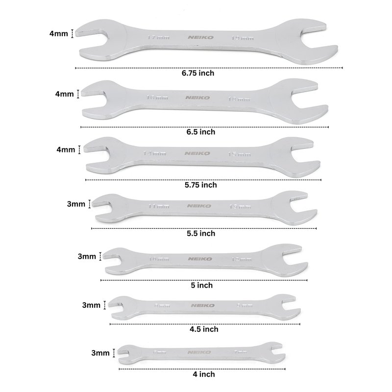 Neiko 03581A Super Thin Wrench Set, 3-4mm Thick, 7 Piece, Metric Sizes 6-19mm