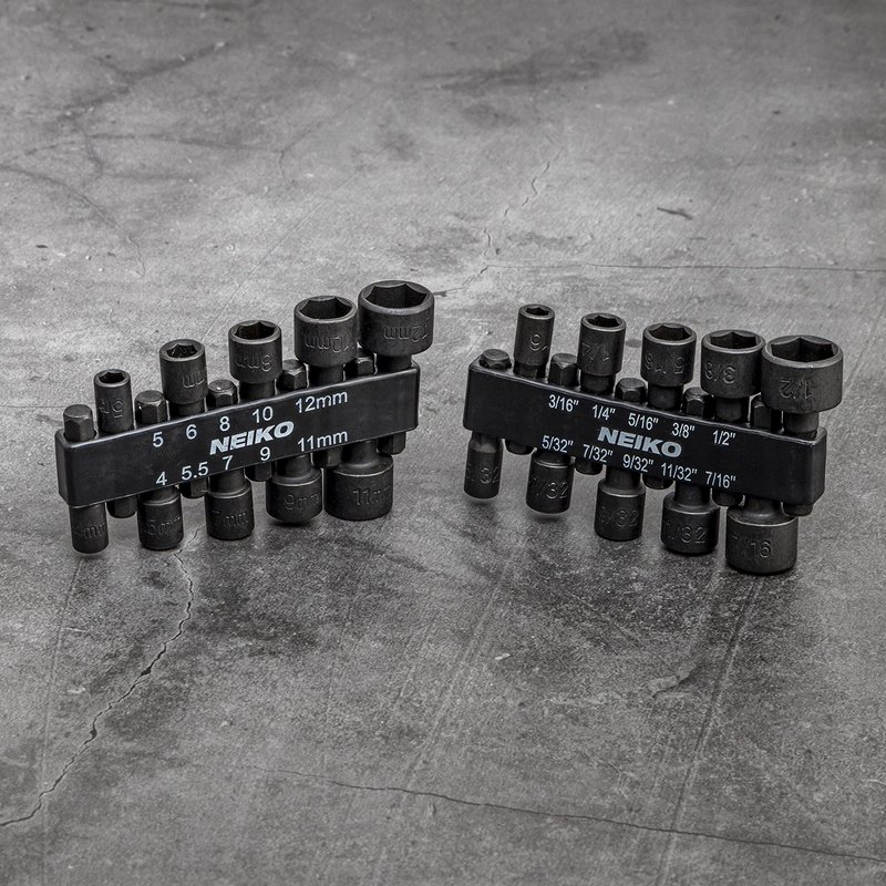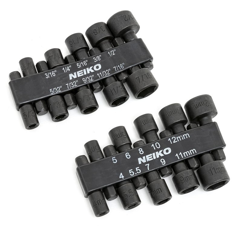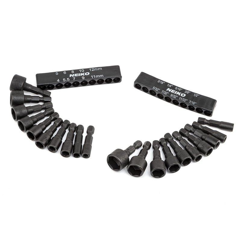 NEIKO 10068A Nut Driver Set, For Impact Drill and Driver, 20 Piece, 1/4” Hex Small Nut Driver Bit Set, Metric and Standard, 4-12 mm & 5/32”-1/2”, CR-V Steel, Nutsetter Driver Bits
