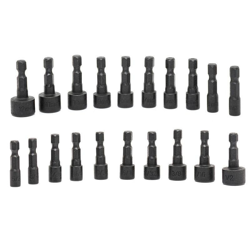 - NUT DRIVER, METRIC AND SAE SIZES: Metric: 4mm, 5mm, 5.5mm, 6mm, 7mm, 8mm, 9mm, 10mm, 11mm, 12mm. Standard: 5/32, 3/16, 7/32, 1/4, 9/32, 5/16, 11/32, 3/8, 7/16, 1/2 Inch.