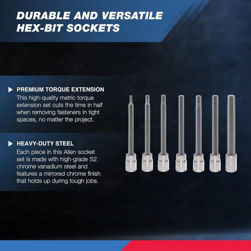 - FULL RANGE ALLEN HEX SET: A complete set of extra-long SAE Allen and hex bit socket set for DIY projects at home and professional use for construction, automotive, and industrial applications