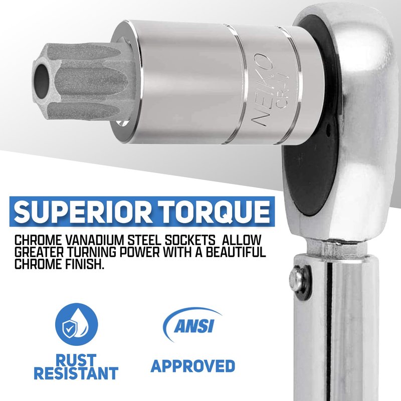 - [PREMIUM QUALITY]: High-strength chrome vanadium steel sockets provide superior torque for greater turning power with mirror chrome finish for corrosion resistance and S2 alloy steel bits reduce wear-outs and ensures longevity.