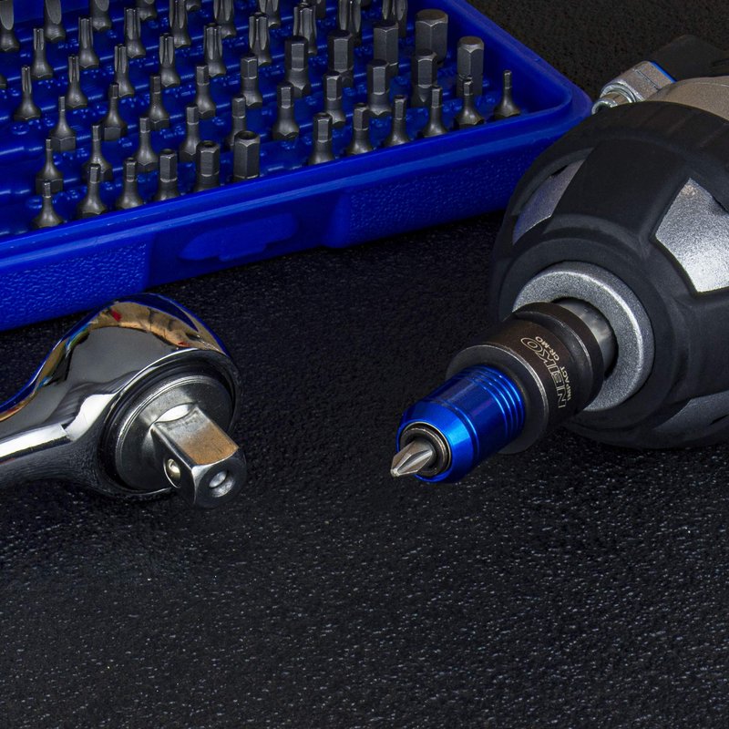 - QUICK-CHANGE DRILL ADAPTER: The 1/2-inch-drive quick-release mechanism in the chuck lets you switch between tools instantly. This bit allows for easy one-handed swapping between impact-driver bits, so you can effectively change tools while working.