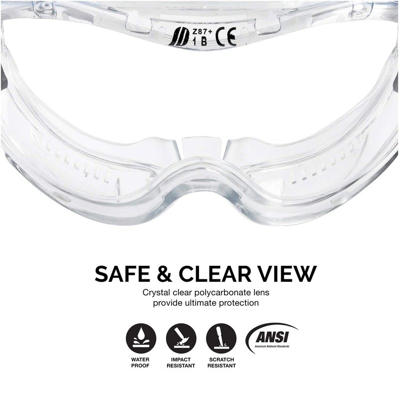 - LAB GOGGLES FOR CHEMISTRY: Each safety goggle is ANSI 287.1 Approved and can be used for eye protection when working on chemistry work or related projects. These splash proof safety goggles will serve as a protective barrier to chemicals.
