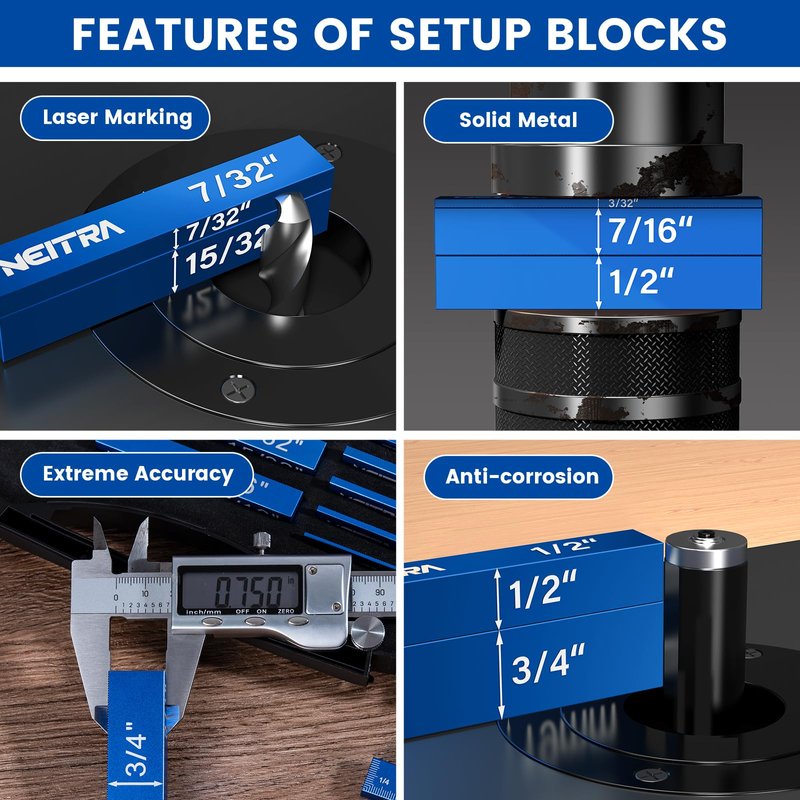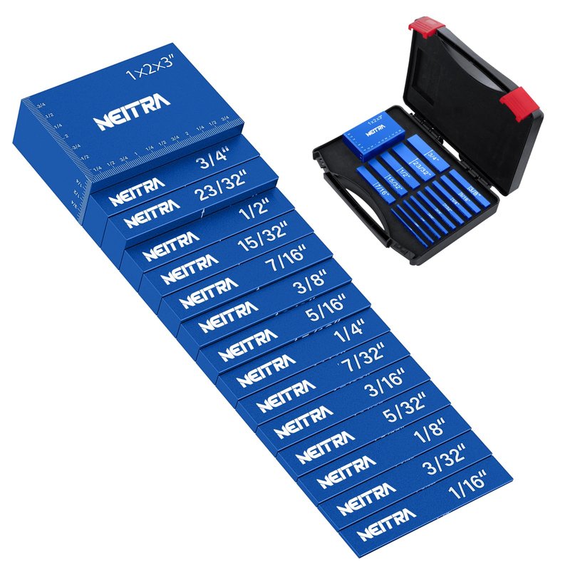 Neitra 15 Pieces Solid Metal Aluminum Alloy Setup Blocks Height Gauge Set for Woodworking