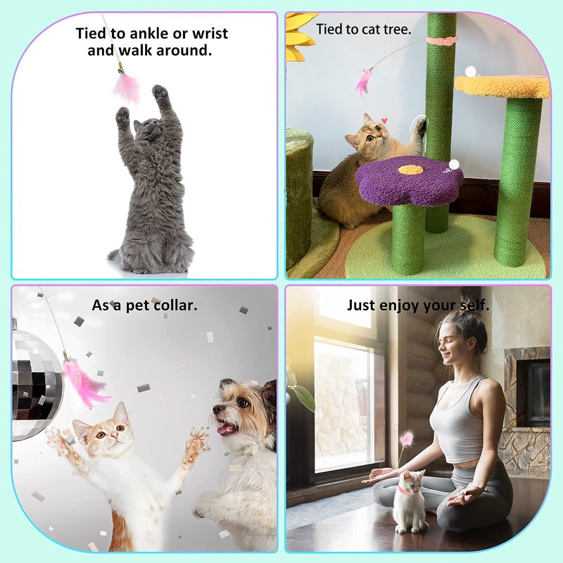 - 【Cat plays with toys alone】: When you install a toy on your cat’s neck, it will sound because of the cat’s movement, inspiring the cat’s hunting instinct,The cat wand toy will help your indoor cat flip, jump, raid, and chase. This is a great way for your cat to stay healthy and happy!