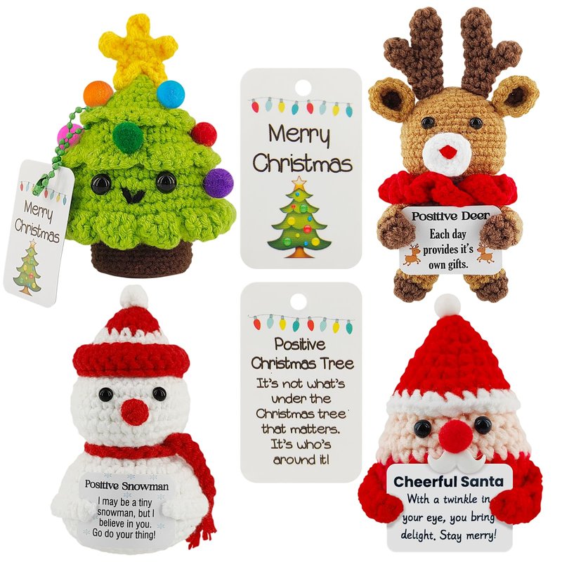 - Package Content:You'll receive four adorable positive christmas croceht doll, including christmas tree, cheerful santa, positive snowman and christmas deer to bring joy and festive spirit to your holiday celebrations