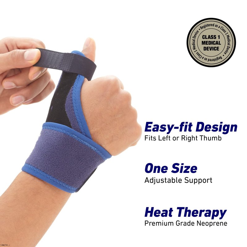 The Neo G Easy-Fit Thumb Brace is Unisex, fits the Left or Right thumb and is One Size for adjustable compression and support. The easily malleable metal splint allows partial immobilization of the thumb whilst allowing free movement of the fingers. It helps encourage the correct alignment of the carpal and thumb joints whilst assisting with inflammation and pain caused by joint overuse. The durable, heat therapeutic neoprene helps provides warmth and support to muscles and joints aiding weak, injured or arthritic thumb and wrists. The medical grade Neo G Easy-Fit Thumb Brace is also compatible with the reusable, dual purpose Neo G Hot & Cold Therapy Disc for fuss free therapy helping relieve stiff, aching and painful joints/muscles