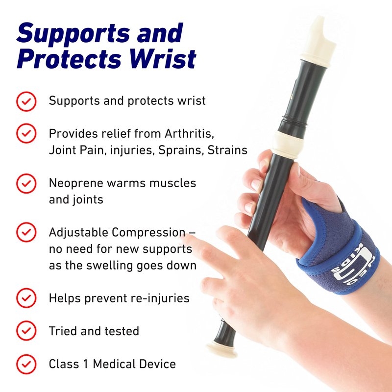 - ONE SIZE AND FULLY ADJUSTABLE COMPRESSION FOR BEST FIT: Universal size (fits up to approximately age 12), fits the Left or Right wrist and is Unisex suitable for girls and boys. The adjustable compression system ensures blood flow safety and gives support to the affected area