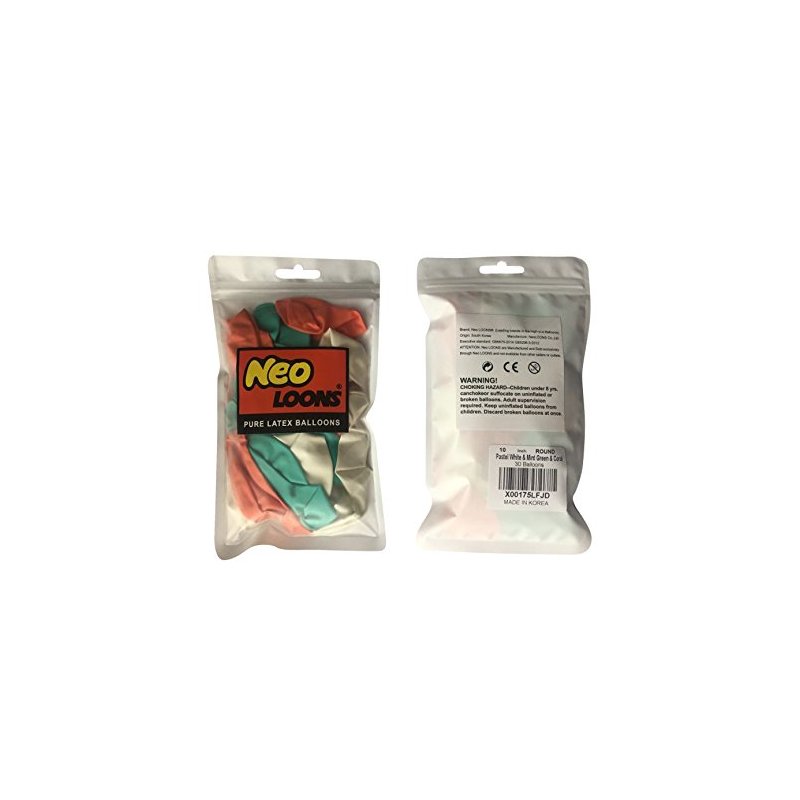 Neo LOONS® 10" Pastel White & Mint Green & Coral Premium Latex Balloons - Great for Kids, Adult Birthdays, Weddings, Receptions, Baby Showers, Water Fights, or Any Celebration, Pack of 30