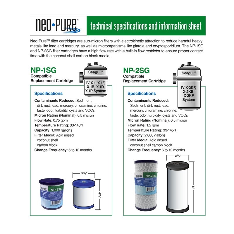 - Cartridge Replacement. The Neo-Pure NP-1SG filter cartridge is compatible with the following General Ecology Seagull IV systems and cartridges.