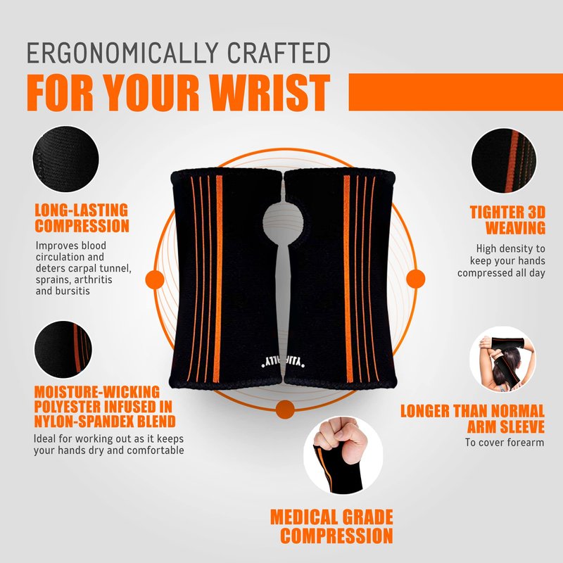 - Versatile Wrist Protector Sleeve - Whether you’re using it for a workout or as a carpal tunnel brace, this wrist compression sleeve is your best bet for optimal support. It’s smartly ventilated so you can wear it for longer.
