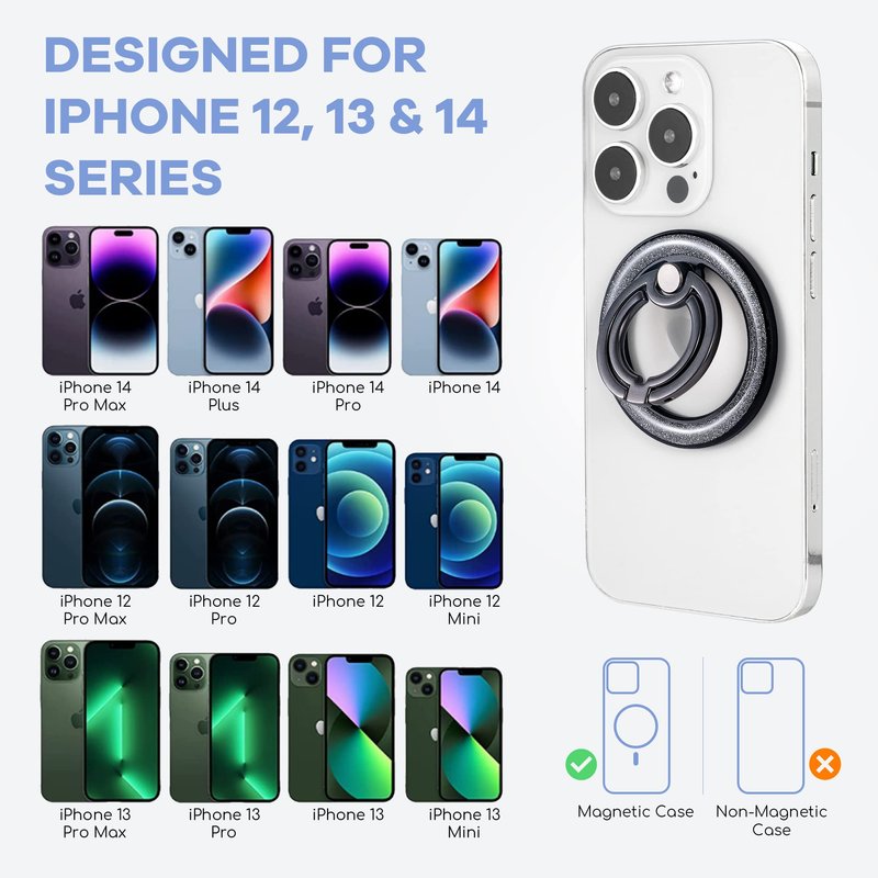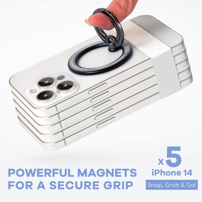 - 【Ultra Strong Magnet】A lightweight yet strong magnetic grip ensures it sticks tightly to your phone. It's strong enough to hold up to 28 oz (800 g), which is equivalent to the weight of 4 phones, and reduces the risk of accidentally dropping. You can safely hold a cup of coffee and hang your phone on your finger, all with one hand!