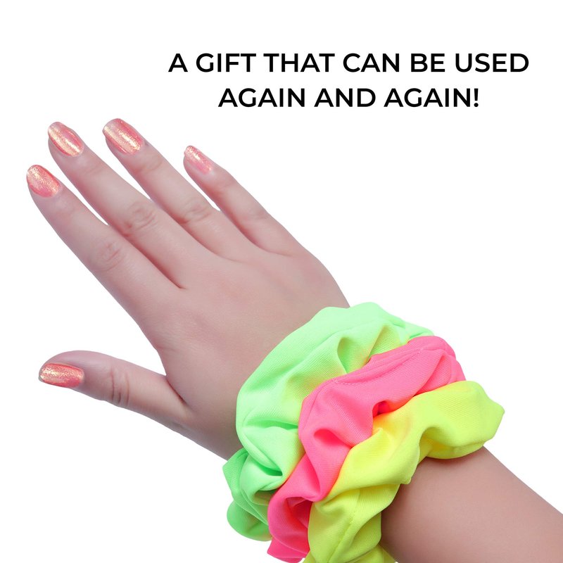 - 🎉NEVER UNDERESTIMATE THE POWER OF A SCRUNCHIE. And, as you plan the most bodacious 80s bachelorette bash, make sure your ladies have the perfect 80s neon scrunchies to TOP IT ALL OFF! After all, the bride needs your help to tie the knot, so why not do it in scrunchie style?