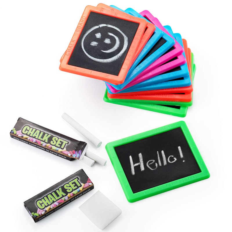 - PERFECT PARTY FAVORS: The ideal size for the gift bags, and great on the go. These mini chalkboard sets are perfect for birthday party favors, classroom learning tools, kids’ goody bag stuffers, party favors for toddlers, treasure and prize chests, carnival prizes, and to help spark your child's imagination & creativity