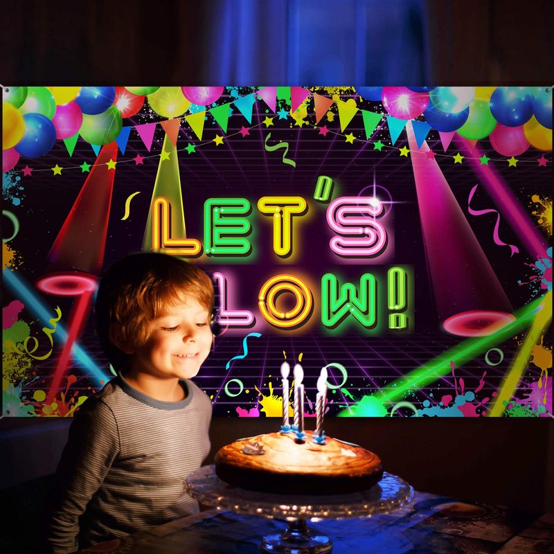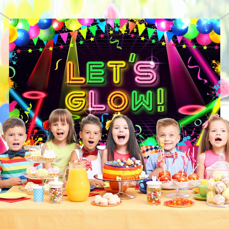Neon Glow Party Backdrop Fabric Let Glow Background Glow Party Themed Backdrop Halloween Neon Birthday Party Decorations for Neon Themed Party Birthday Party, 5.9 x 3.6 Ft