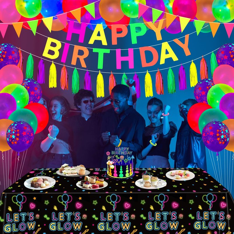 - Perfect for: decorating birthday parties, weddings, baby shower, graduation parties, kid's glow birthday party, fluorescent-themed party, black light party, rave summer party, stage decoration, concert, holiday carnival, baby shower, photo booth props and photography background, glow in the dark birthday party decorations, carnival, dance party or anywhere that bright neon colors are required.