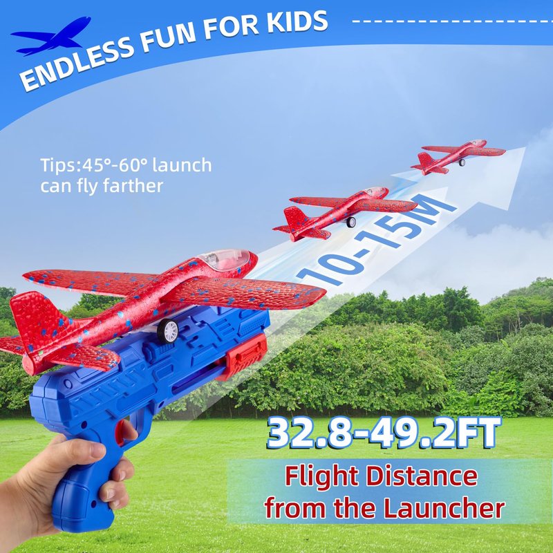 - 【Boost Kids' Growth】Outdoor sports will help boost children' Growth. Just provide an opportunity for kids on throwing these airplane launcher toys, play with it in your playroom or outside for hours. Kids will Learn how to launch and control the boys toys age 6-8, help your little ones develop coordination, critical thinking skills with a practical way At the same time, child can put the phone and computer down and enjoy the fun of running by picking up the kids toys.