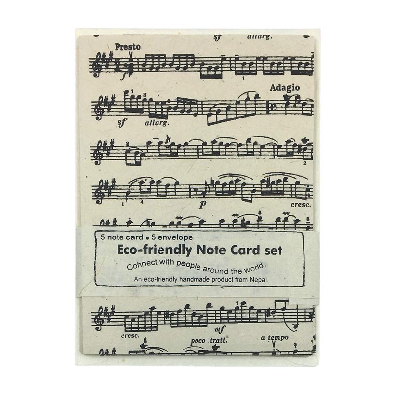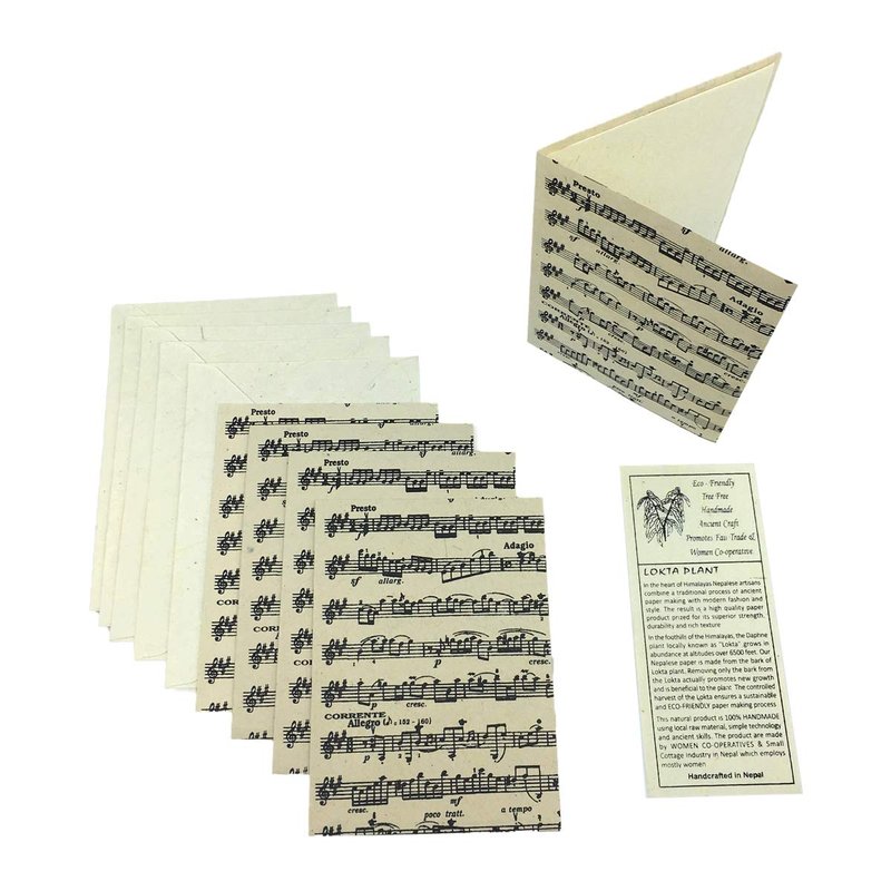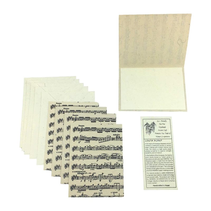Nepal Greeting Card and Envelope Set: Sheet Music, Eco-friendly Handmade Lokta Paper