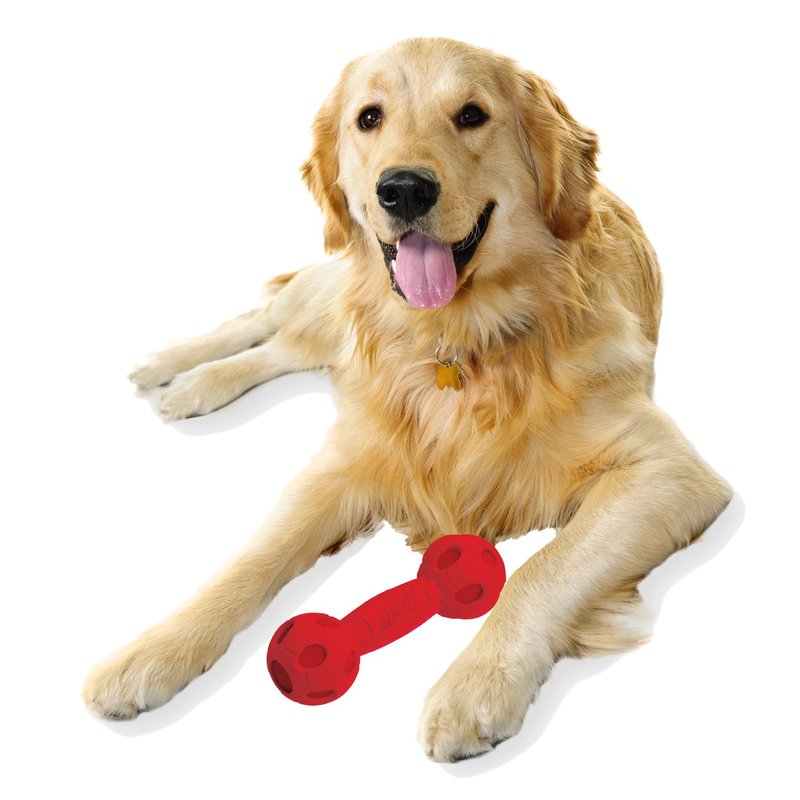 - Barbell shape encourages active use and is easy for dogs to pick up