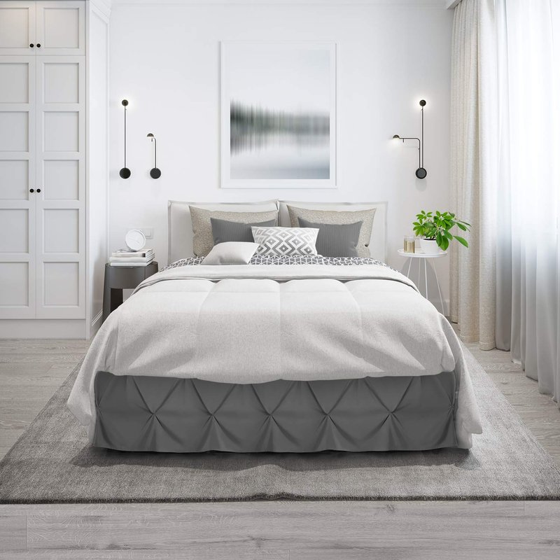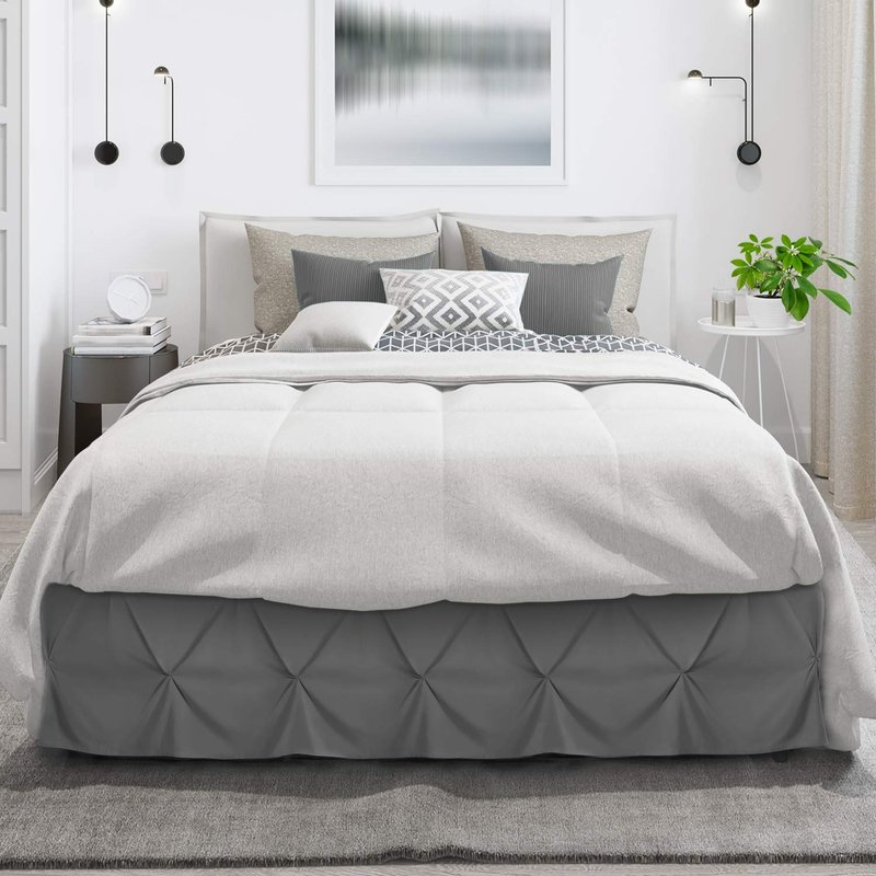 Nestl Bedding Pinch Pleat Design Bed Skirt |Grey Bed skirt |Microfiber Queen Bed Skirt