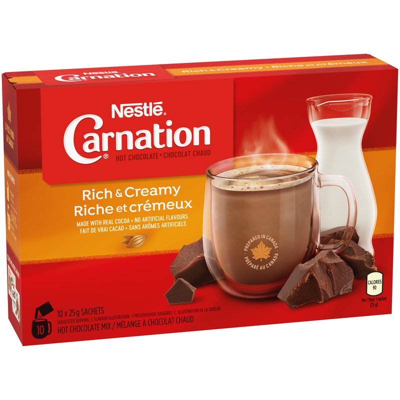 Nestle Carnation Hot Chocolate Rich and Creamy 10 x 25 g sachets, 250g (8.83oz), Product of Canada