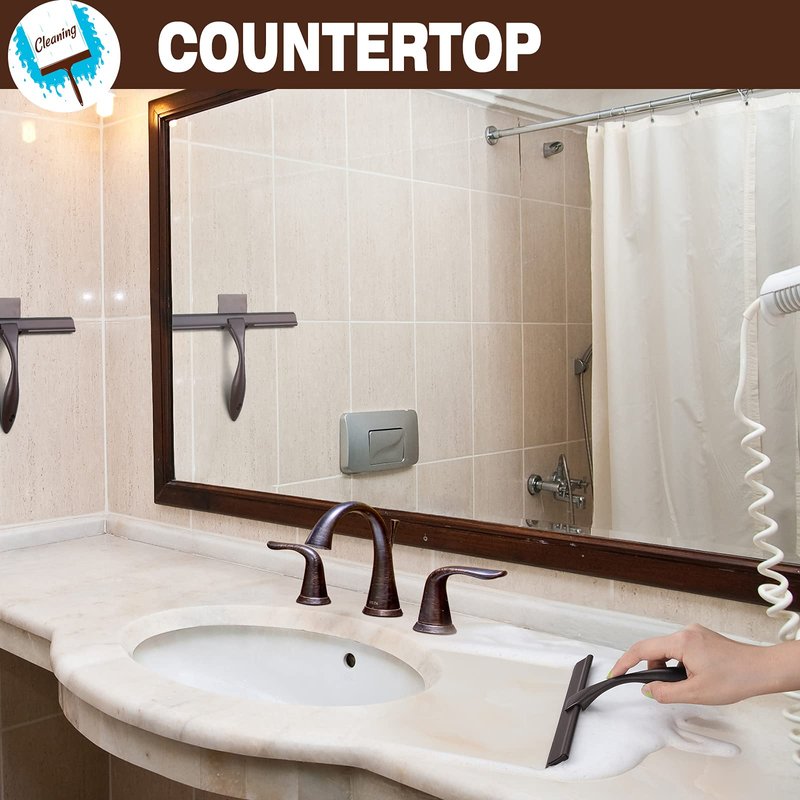 - STREAK-FREE & SQUEAK-FREE WHILE WIPING: Very quiet while sweeping or scrubbing by the shower squeegee to remove water or foam on the glass and counter, leaving no streaks or stains on it, you don’t have to bear the repeated scrubbing and noises, just one simple wipe.