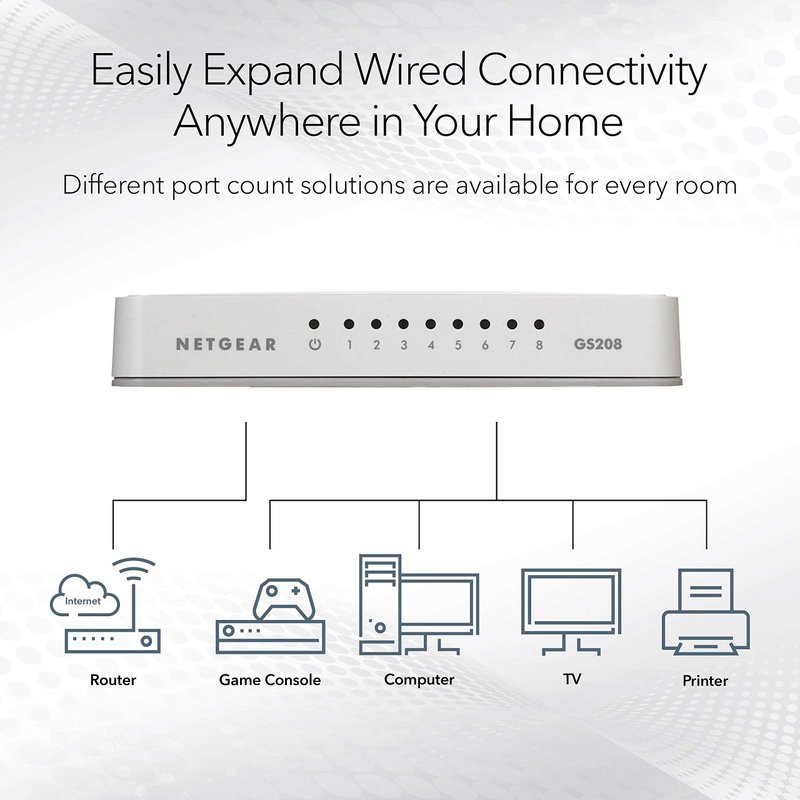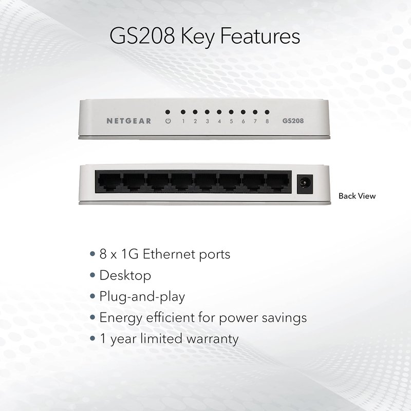 NETGEAR 8-Port Gigabit Ethernet Unmanaged Switch (GS208) - Desktop, Ethernet Splitter, Silent Operation, Plug-and-Play