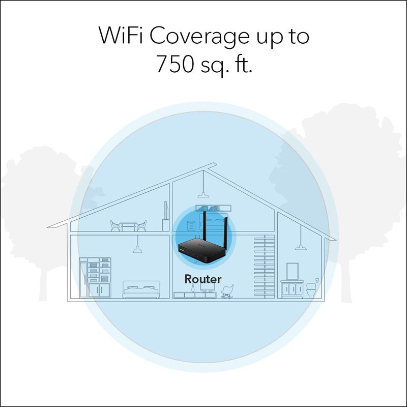 - Coverage up to 750 sq. ft. for up to 10 devices.Beamforming : Not applicable. WiFi Range : Medium to large homes
