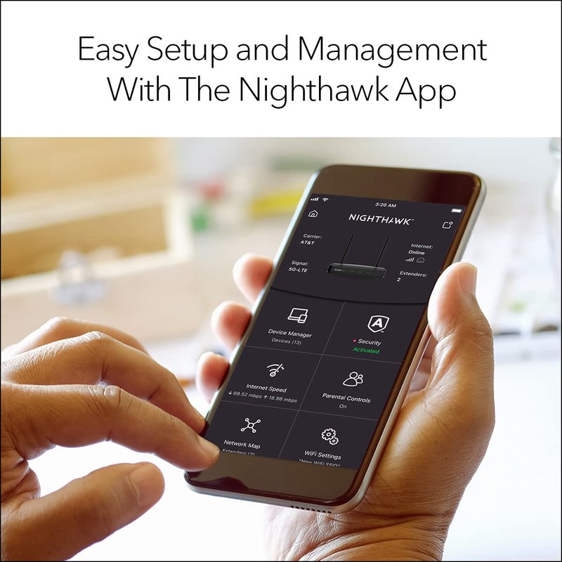 - Sets up in minutes with the Nighthawk App; easily manage WiFi settings, test internet speed, and monitor data usage