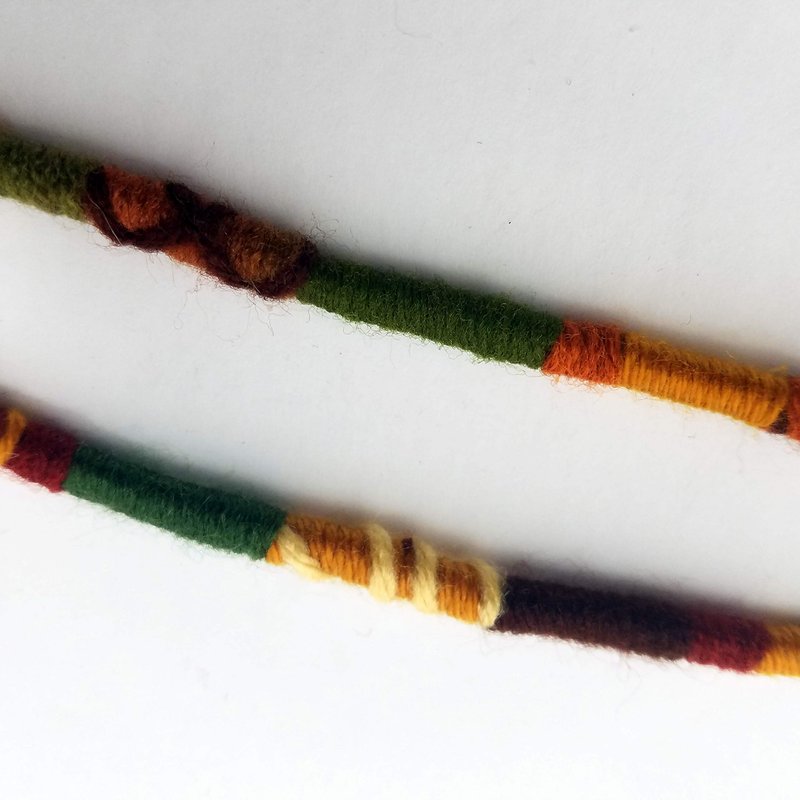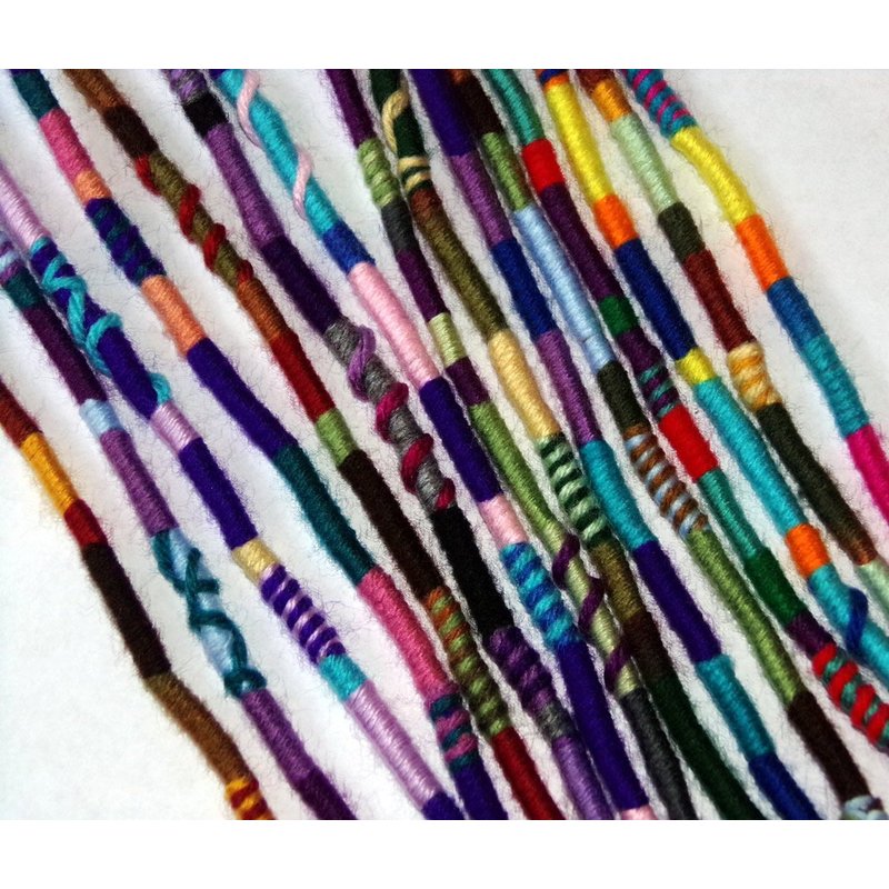 Choose your length from the dropdown menu. Yarn hair wrap is approximately 1/4" thickness. Designs and color placement will vary as these are each handmade upon your order.