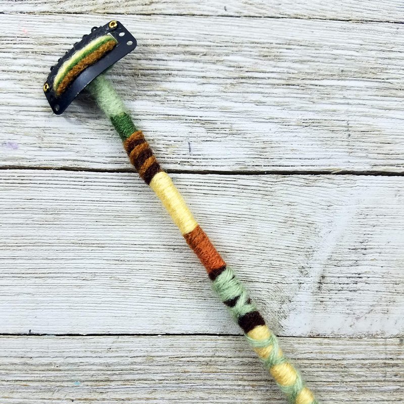 Quantity: 1 Handmade earth tones (greens, browns, yellows, rusts) clip in hair extension accessory for dreads, braids and curls. Even dress up your straight locks by snapping in this convenient barrette clip. Great and colorful accessory for girls, dreadheads and hippie bohemian styles.