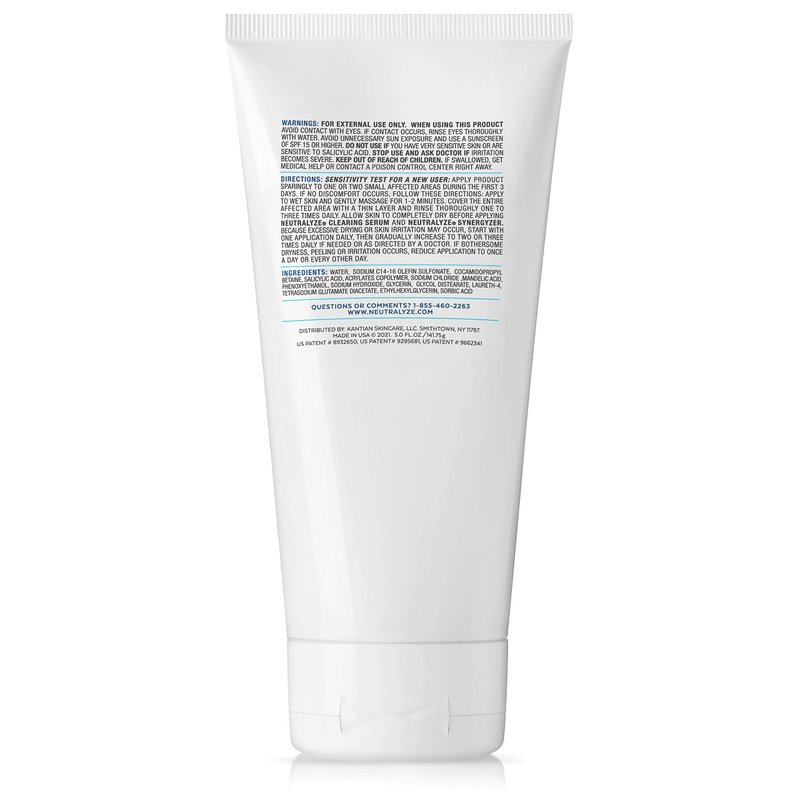 Neutralyze Moderate to Severe Face Wash for Acne Prone Skin (extra large/5 Oz, 90+ Day Supply) is a maximum strength acne face wash for women and men featuring medical grade 2% salicylic acid & mandelic acid to eliminate acne & prevent future breakouts. Experience gentle exfoliation and watch damaged skin renew to reveal the natural complexion you were born with. This luxurious face wash for acne prone skin is creamy and texture-rich, making your skin feel refreshed, rejuvenated and hydrated after every use.